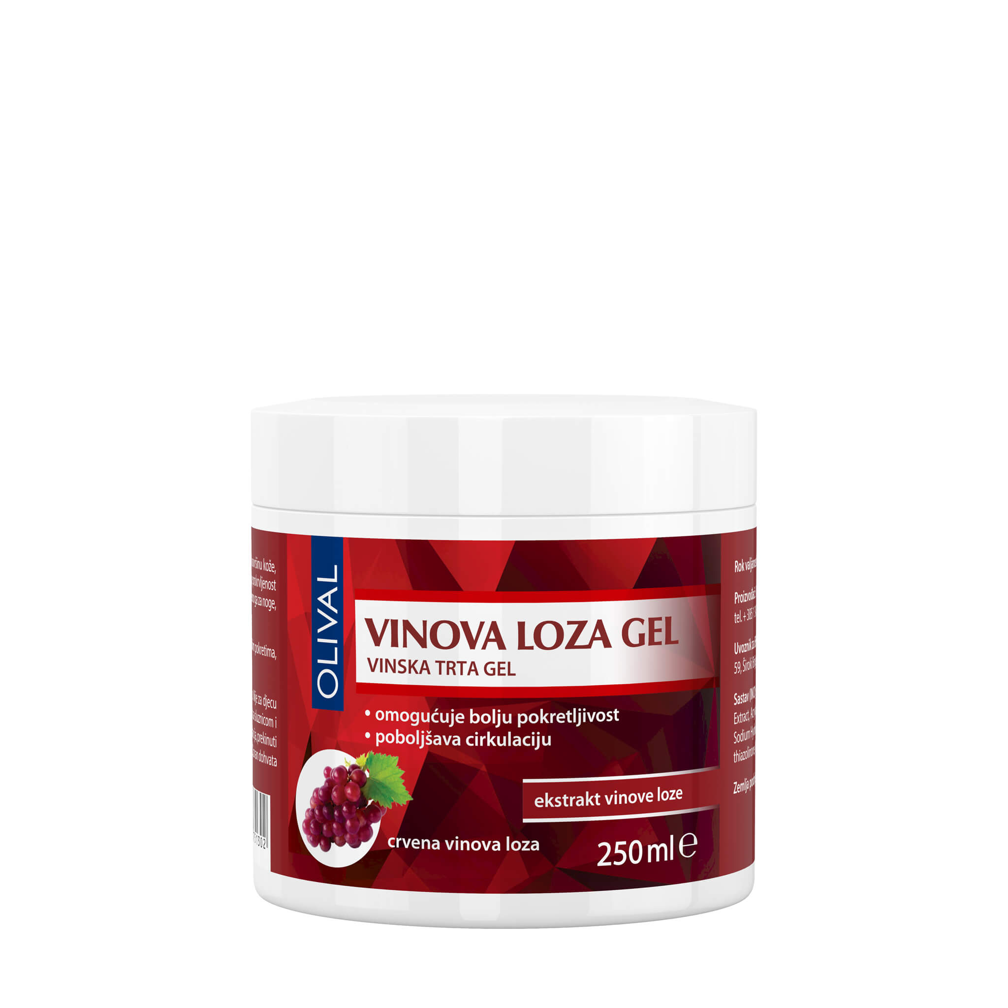 Vinova loza gel lagano hladi površinu kože, daje osjećaj ugode i opuštanja. Pospješuje prokrvljenost kože na mjestu nanošenja, a preporuča se za noge, ruke, zglobove ili križa.Upotreba:Nanosite gel laganim kružnim pokretima, bez utrljavanja, nekoliko puta dnevno.Upozorenja:Samo za vanjsku primjenu. Izbjegavati kontakt sa sluznicom i otvorenim ranama. Ako se pojavi iritacija, prekinuti upotrebu. Čuvati na temperaturi do 25°C, izvan dohvata djece.